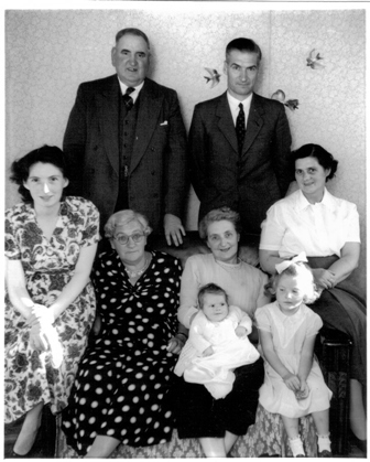 Front row from left to right my Mum, my Gran Harris, Auntie Gladys and Auntie Connie, me and my sister.